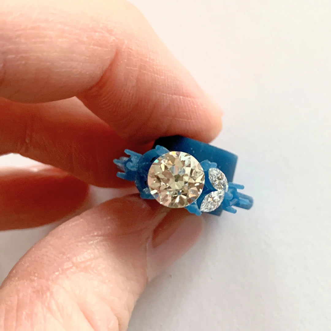 Once the wax is approved, we will have our qualified jewelers cast your ring in the metal of your choice and expertly set your stones!